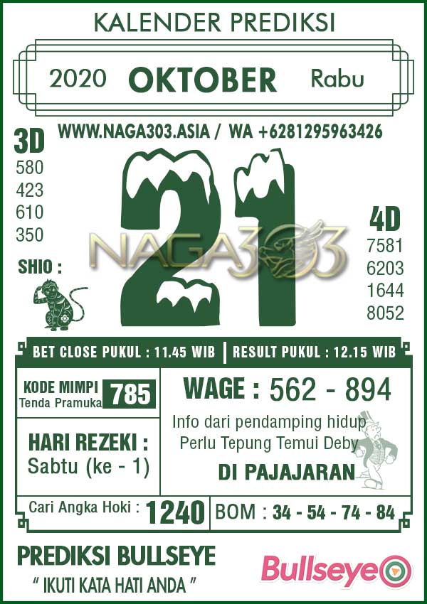 Prediksi Bullseye Rabu 21 Oktober 2020