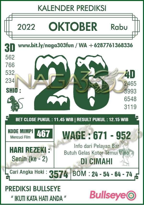Prediksi Bullseye Rabu 26 Oktober 2022 | Web Toto Naga303
