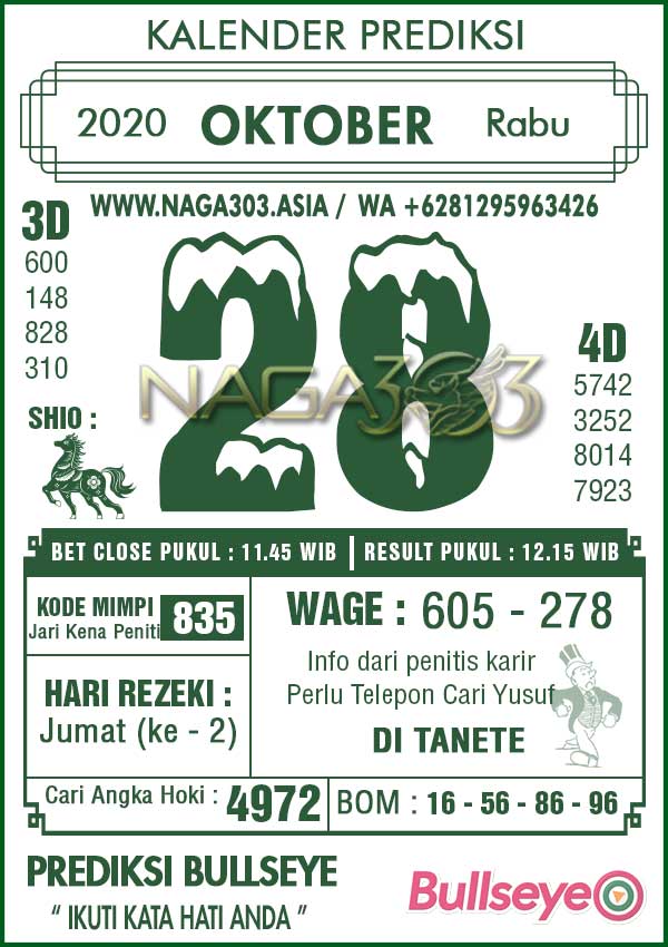 Prediksi Bullseye Rabu 28 Oktober 2020