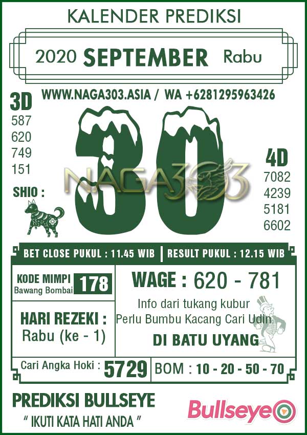 Prediksi Bullseye Rabu 30 September 2020