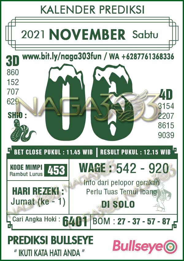 Prediksi Bullseye Sabtu 06 November 2021