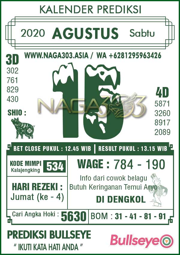 Prediksi Bullseye Sabtu 15 Agustus 2020