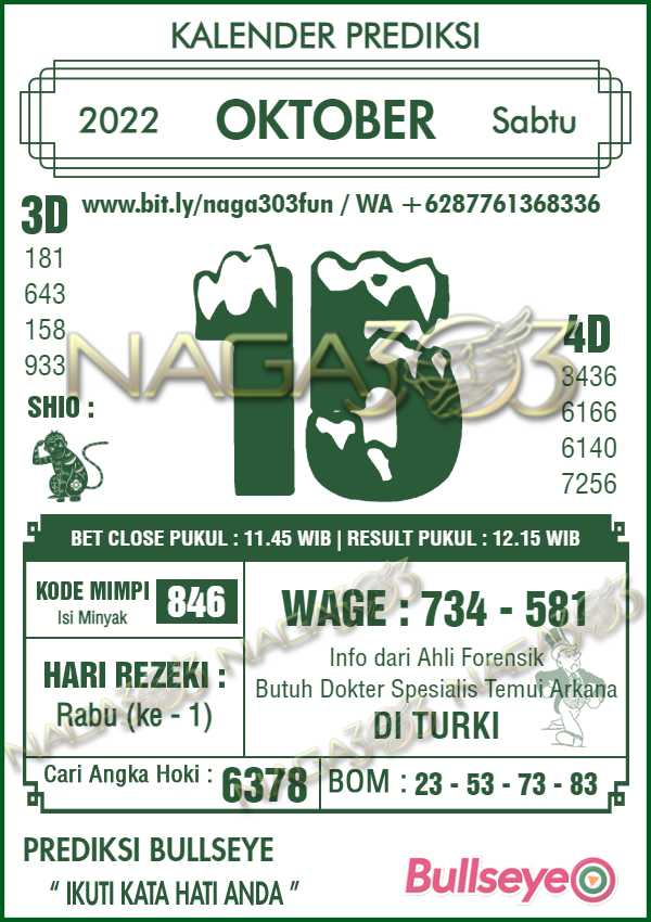 Prediksi Bullseye Sabtu 15 Oktober 2022