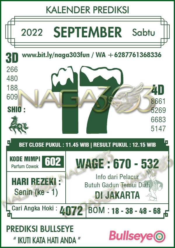 Prediksi Bullseye Sabtu 17 September 2022