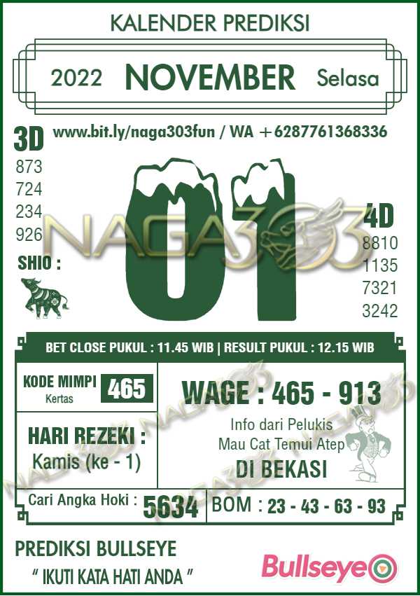 Prediksi Bullseye Selasa 01 November 2022