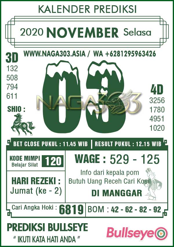 Prediksi Bullseye Selasa 03 November 2020 | Web Toto Naga303