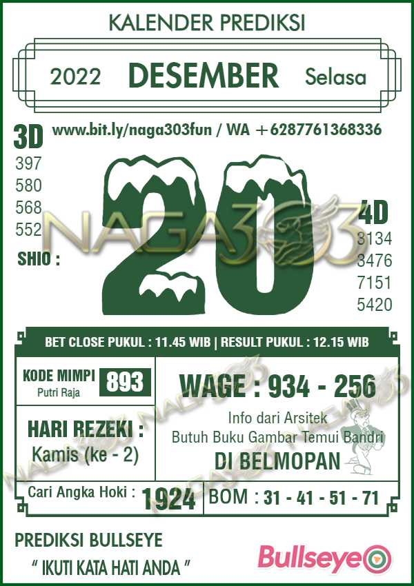 Prediksi Bullseye Selasa 20 Desember 2022