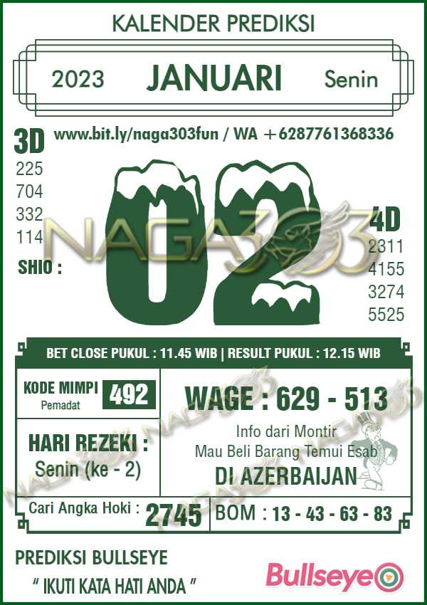 Prediksi Bullseye Senin 02 Januari 2023 | Web Toto Naga303