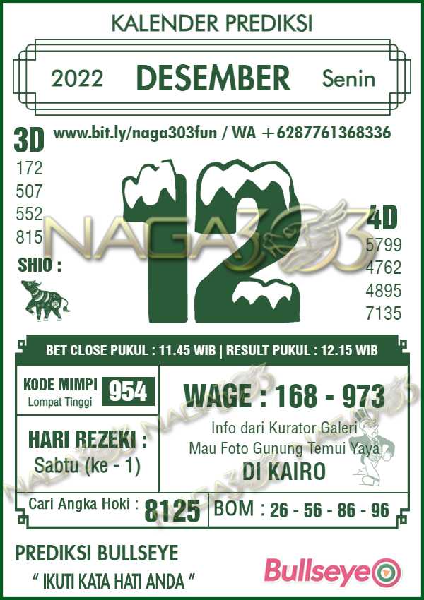 Prediksi Bullseye Senin 12 Desember 2022
