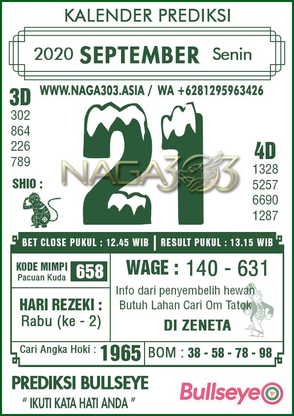 Prediksi Bullseye Senin 21 September 2020
