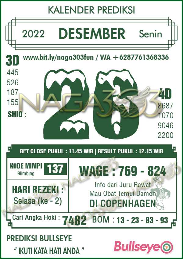 Prediksi Bullseye Senin 26 Desember 2022 | Web Toto Naga303