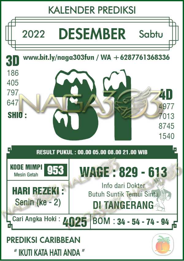 Prediksi Caribbean Pools Sabtu 31 Desember 2022 | Web Toto Naga303
