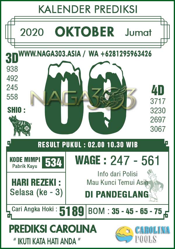 Prediksi Carolina Pools Jumat 09 Oktober 2020