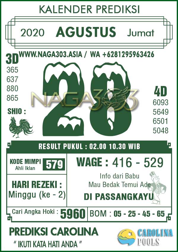 Prediksi Carolina Pools Jumat 28 Agustus 2020