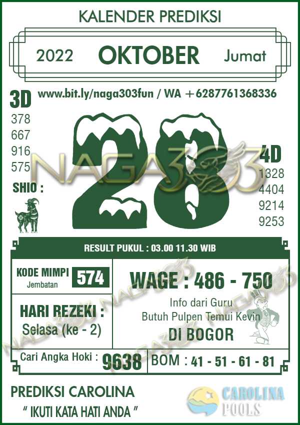 Prediksi Carolina Pools Jumat 28 Oktober 2022