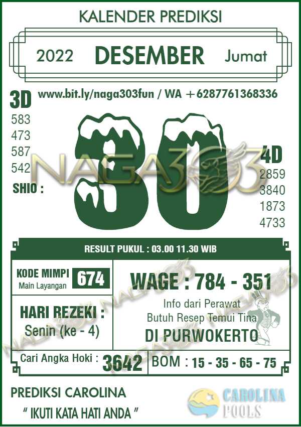 Prediksi Carolina Pools Jumat 30 Desember 2022