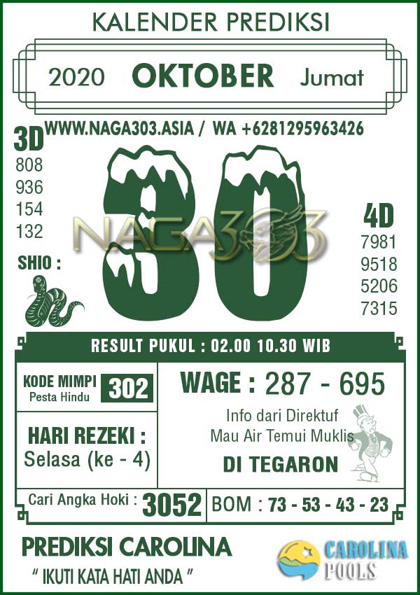 Prediksi Carolina Pools Jumat 30 Oktober 2020 | Web Toto Naga303