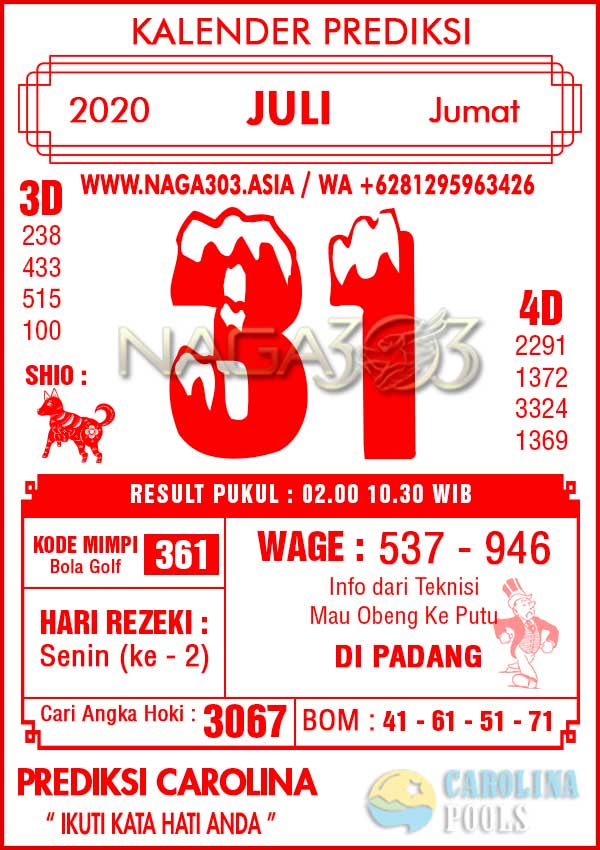 Prediksi Carolina Pools Jumat 31 Juli 2020