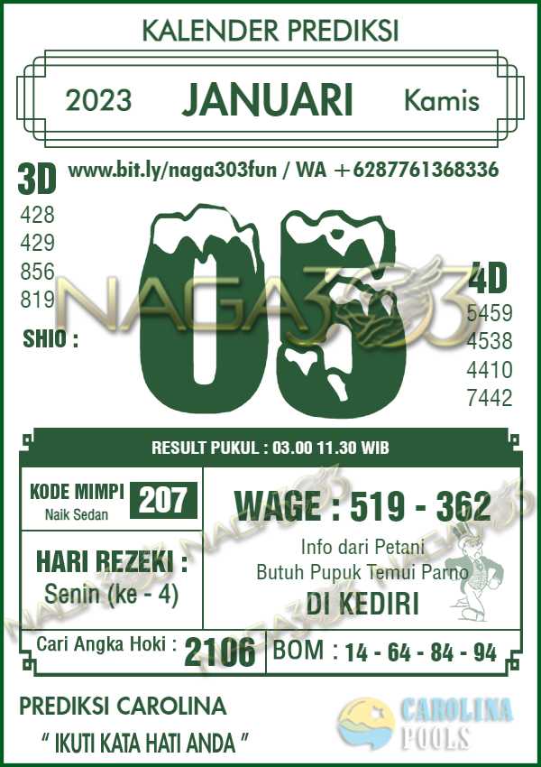 Prediksi Carolina Pools Kamis 05 Januari 2023 | Web Toto Naga303