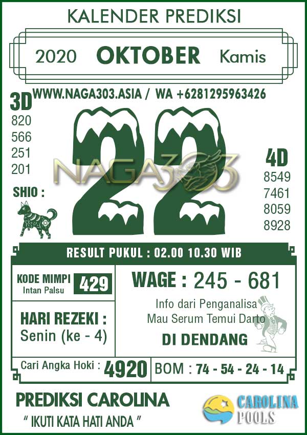 Prediksi Carolina Pools Kamis 22 Oktober 2020