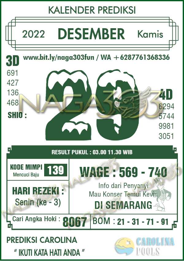 Prediksi Carolina Pools Kamis 29 Desember 2022