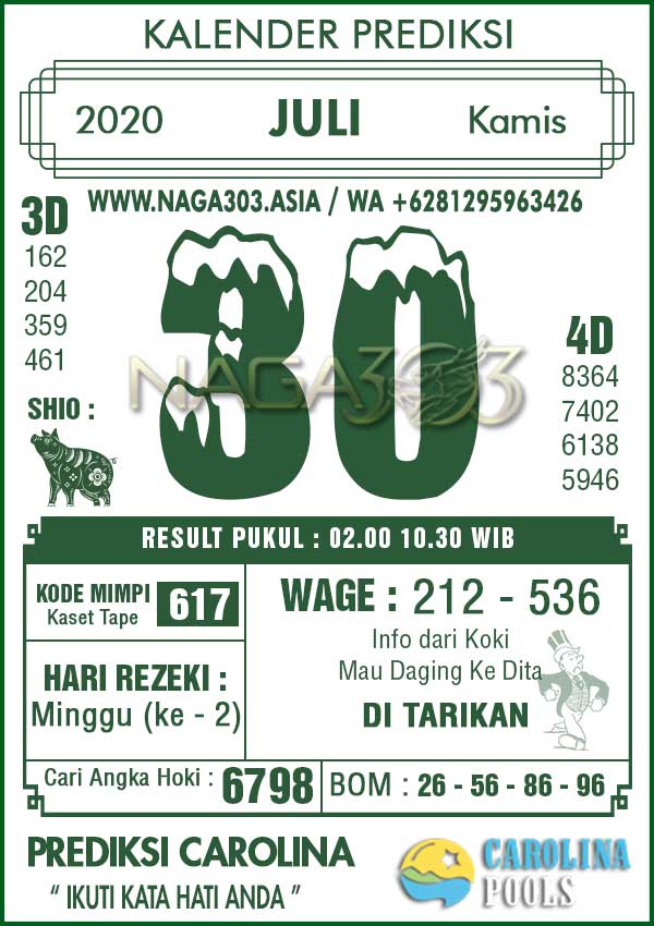 Prediksi Carolina Pools Kamis 30 Juli 2020