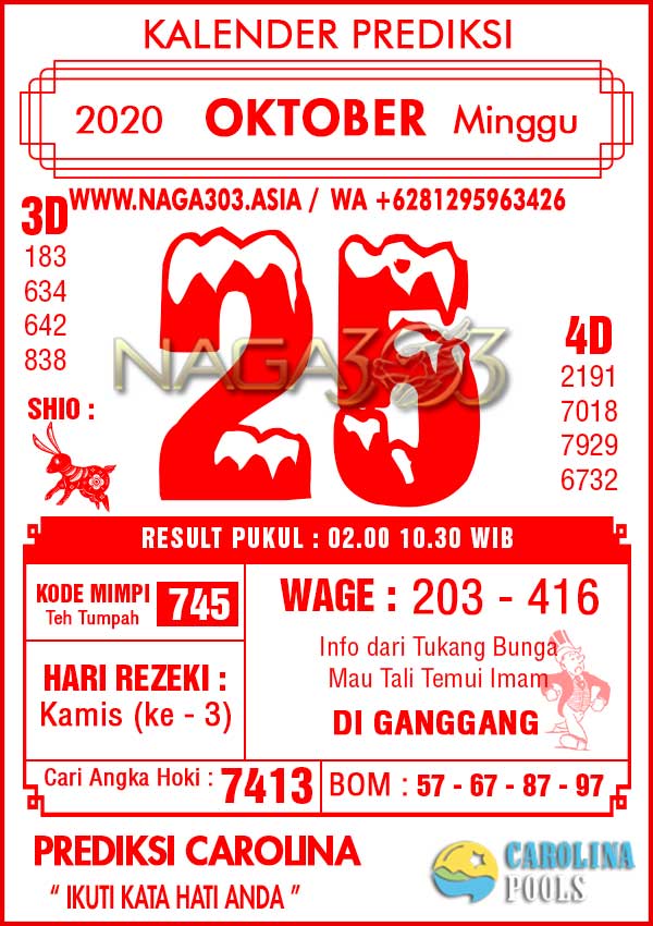 Prediksi Carolina Pools Minggu 25 Oktober 2020 | Web Toto Naga303