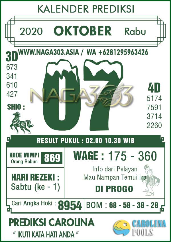 Prediksi Carolina Pools Rabu 07 Oktober 2020 | Web Toto Naga303