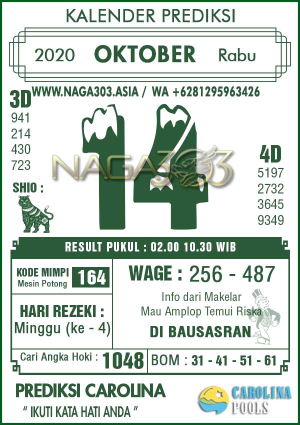 Prediksi Carolina Pools Rabu 14 Oktober 2020 | Web Toto Naga303
