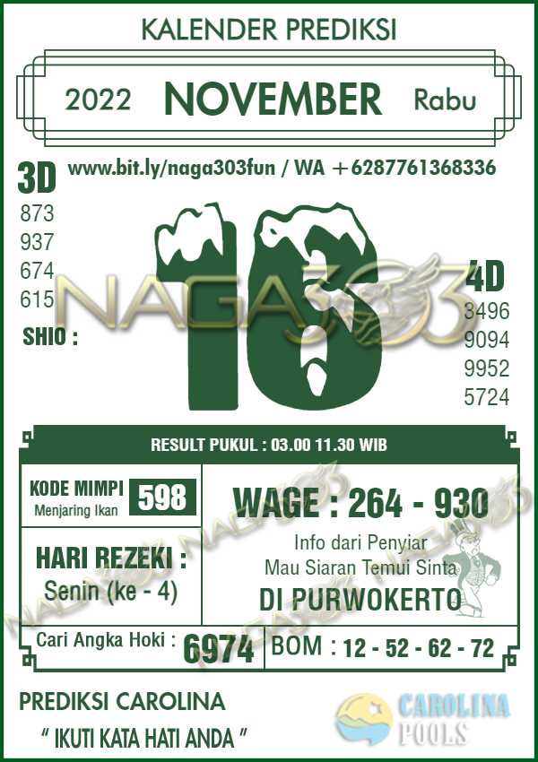 Prediksi Carolina Pools Rabu 16 November 2022