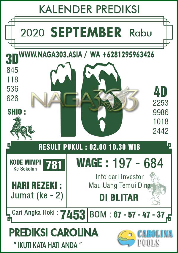 Prediksi Carolina Pools Rabu 16 September 2020 | Web Toto Naga303