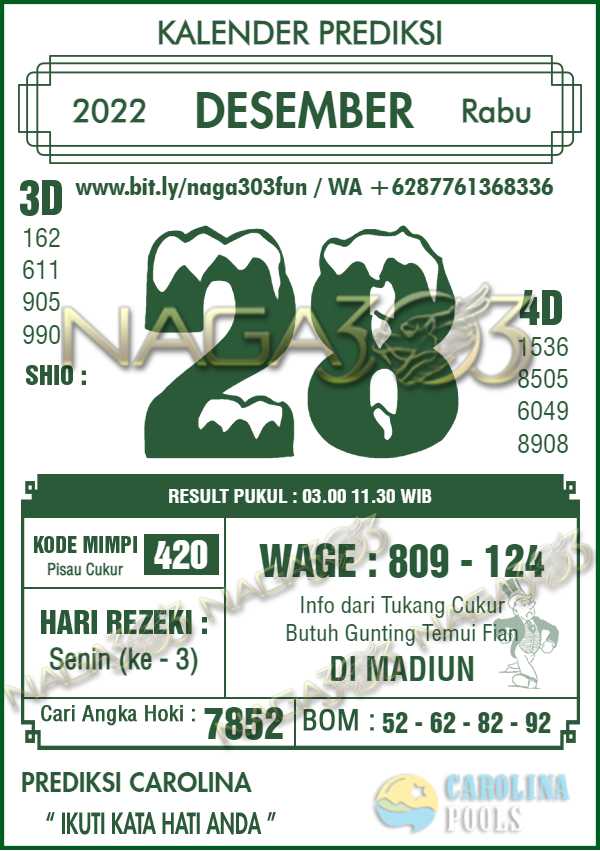 Prediksi Carolina Pools Rabu 28 Desember 2022
