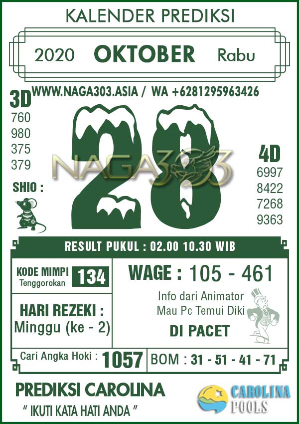 Prediksi Carolina Pools Rabu 28 Oktober 2020 | Web Toto Naga303