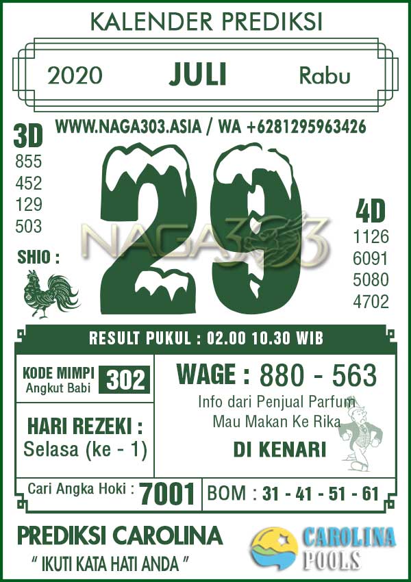 Prediksi Carolina Pools Rabu 29 Juli 2020 | Web Toto Naga303