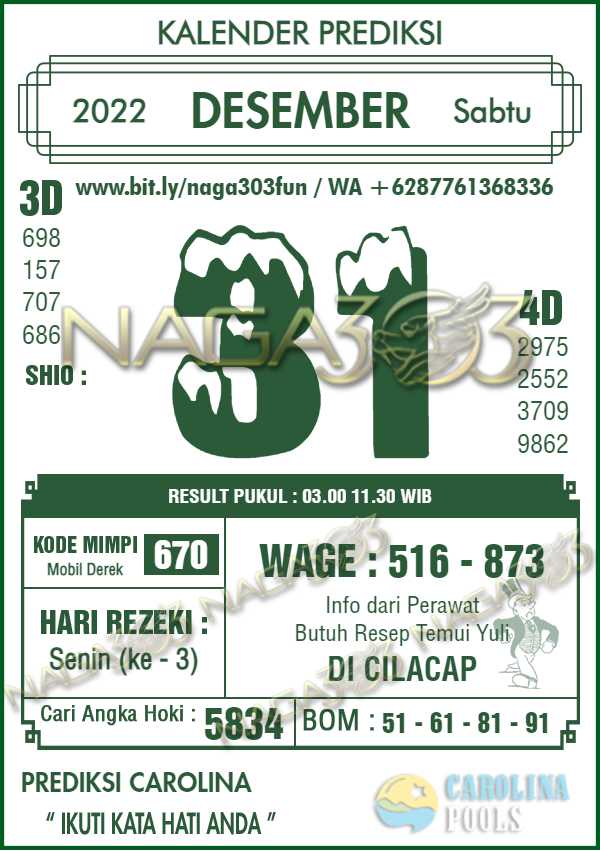 Prediksi Carolina Pools Sabtu 31 Desember 2022