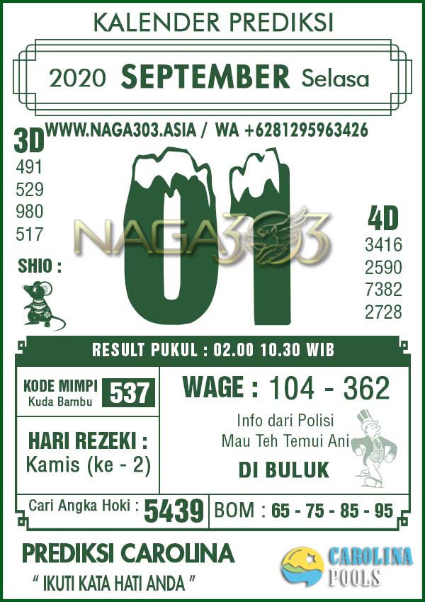 Prediksi Carolina Pools Selasa 01 September 2020