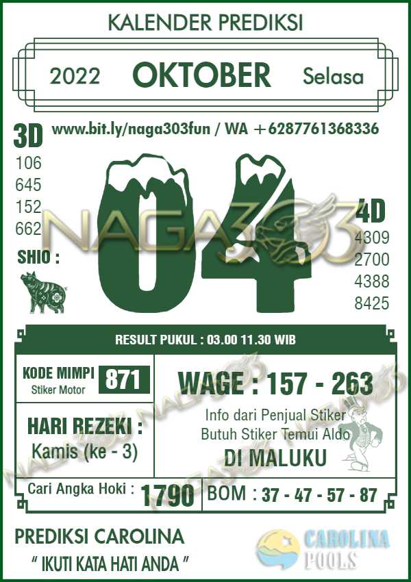 untuk informasi mengenai Prediksi CAROLINA POOLS, ini lah yang tadi kami bahas semoga bermanfaat prediksinya dan semoga anda beruntung. Salam Hokky…