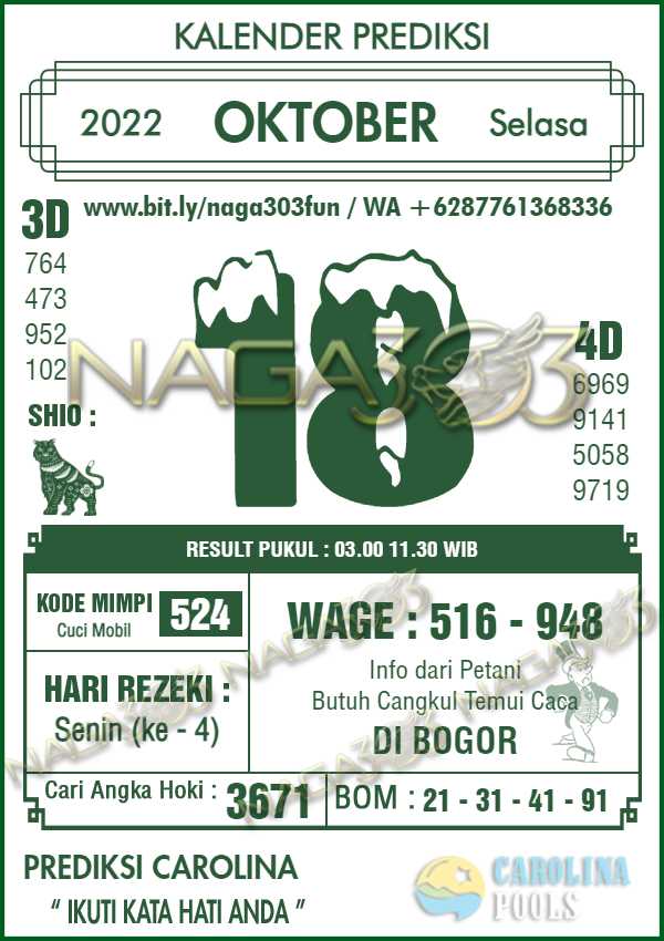 Prediksi Carolina Pools Selasa 18 Oktober 2022 | Web Toto Naga303