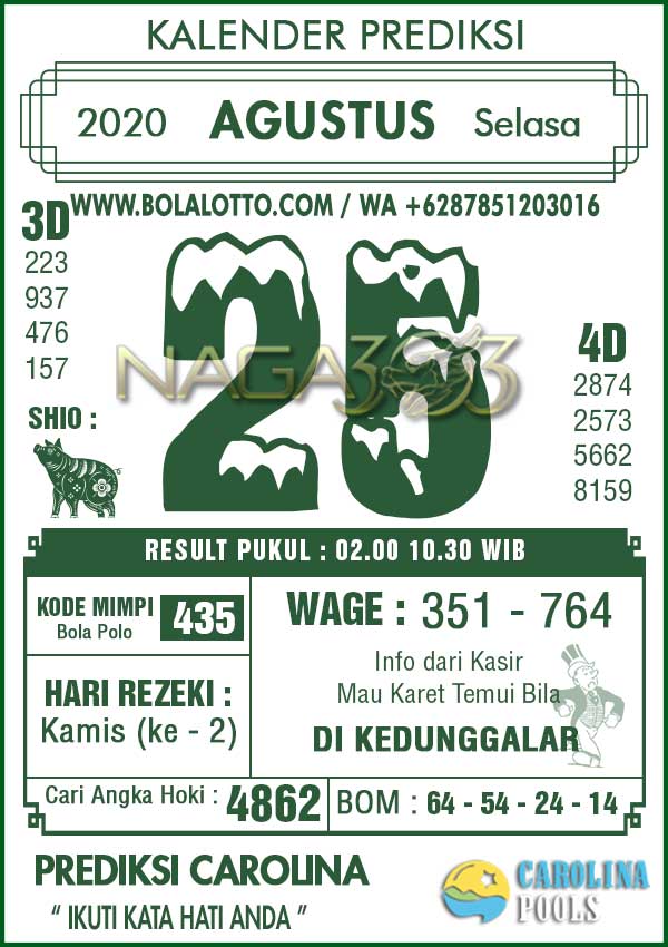 Prediksi Carolina Pools Selasa 25 Agustus 2020