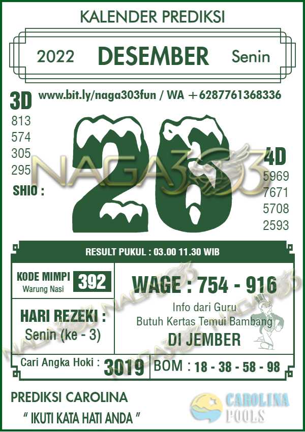 Prediksi Carolina Pools Senin 26 Desember 2022