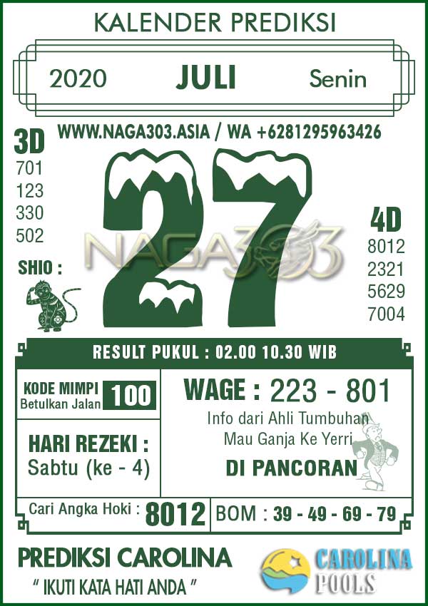 Prediksi Carolina Pools Senin 27 Juli 2020