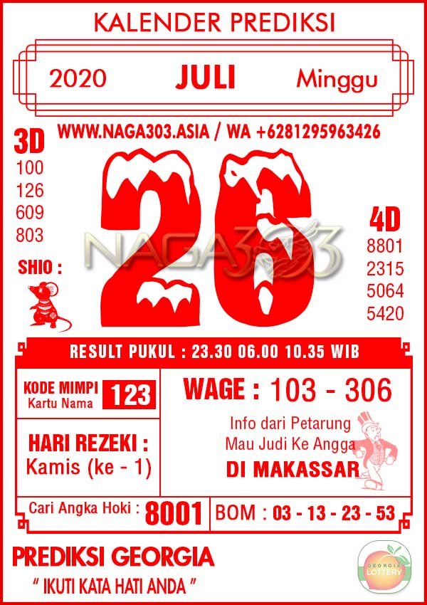 Prediksi Georgia Pools Minggu 26 Juli 2020 | Web Toto Naga303