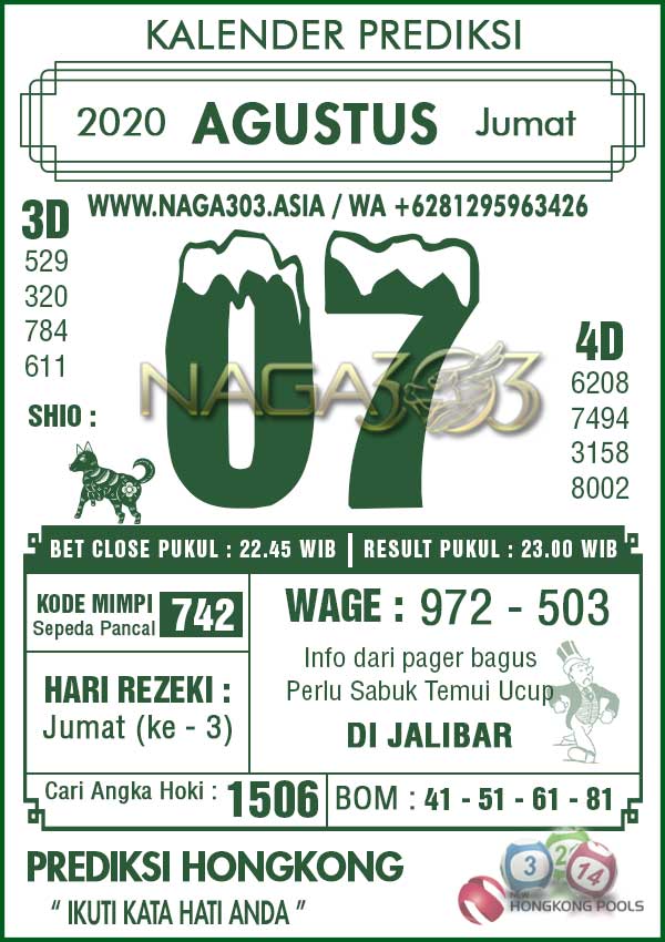 Prediksi Hongkong Pools Jumat 07 Agustus 2020 | Web Toto Naga303