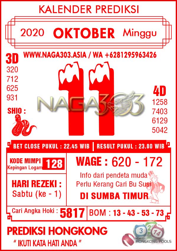 Prediksi Hongkong Pools Minggu 11 Oktober 2020 | Web Toto Naga303