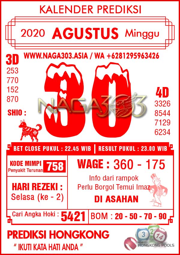 Prediksi Hongkong Pools Minggu 30 Agustus 2020 | Web Toto Naga303