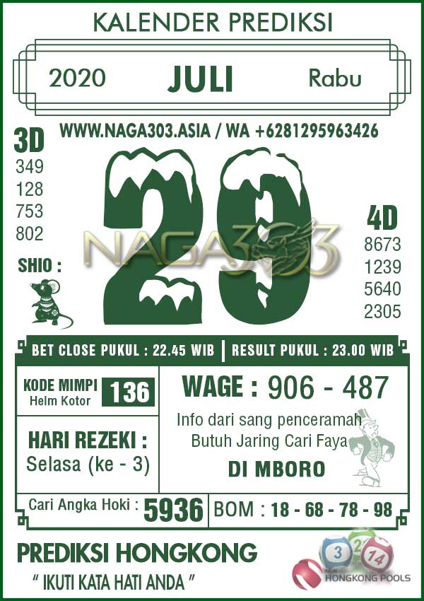 Prediksi Hongkong Pools Rabu 29 Juli 2020 | Web Toto Naga303
