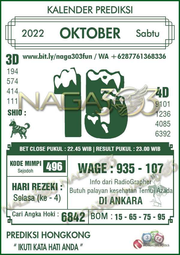 Prediksi Hongkong Pools Sabtu 15 Oktober 2022 | Web Toto Naga303