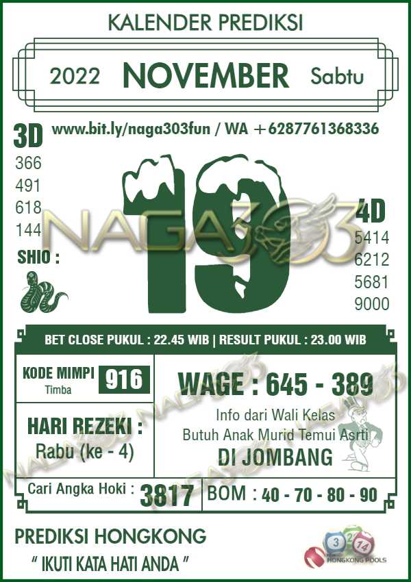 Prediksi Hongkong Pools Sabtu 19 November 2022 | Web Toto Naga303