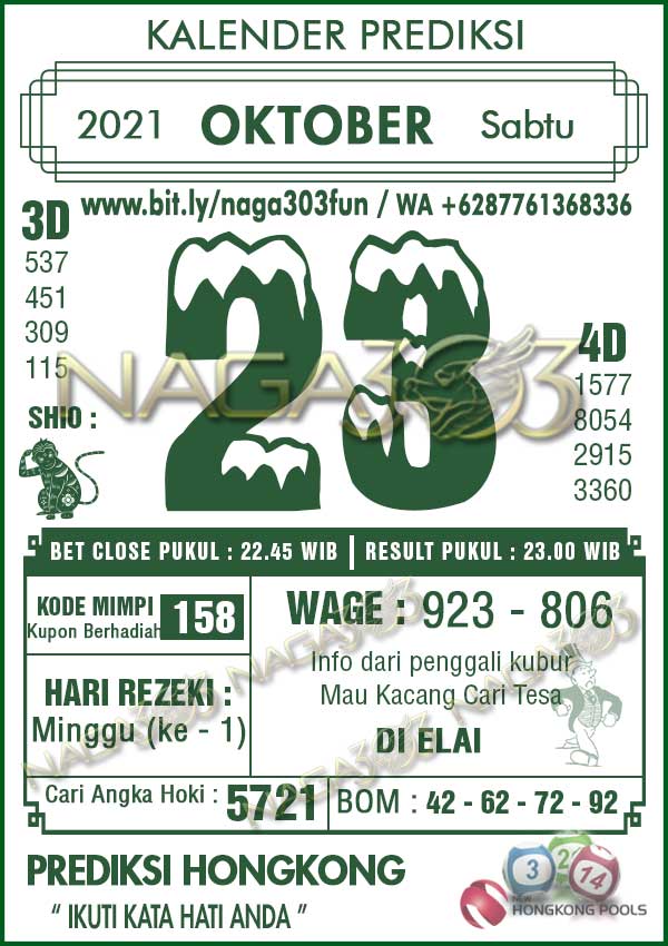 Prediksi Hongkong Pools Sabtu 23 Oktober 2021 | Web Toto Naga303