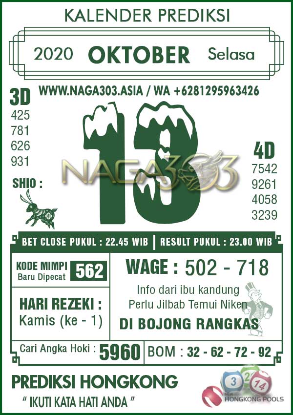 Prediksi Hongkong Pools Selasa 13 Oktober 2020 | Web Toto Naga303